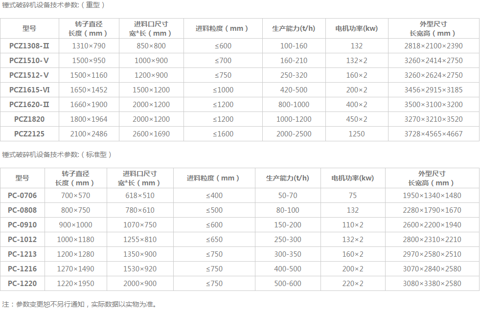 我們可以看到型號(hào)為PC-1213的錘式破碎機(jī)就是指1214 破碎機(jī);PCZ1308-II指的是1315破碎機(jī)。