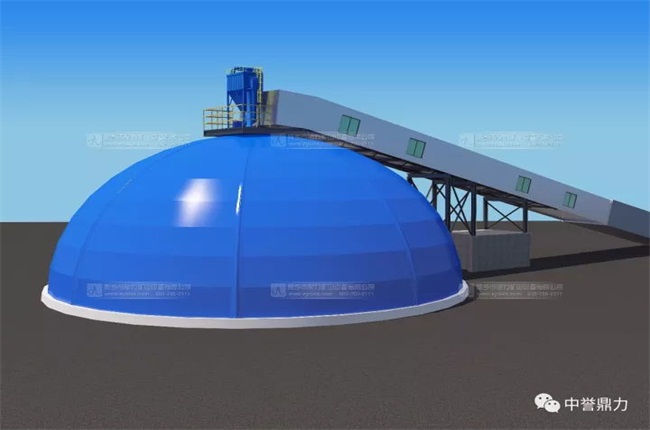 中譽鼎力生產線進料倉設置,可以同時滿足4輛60噸以上的礦車卸料;進料倉上部設置除塵器收塵,集中吸收并循環利用。