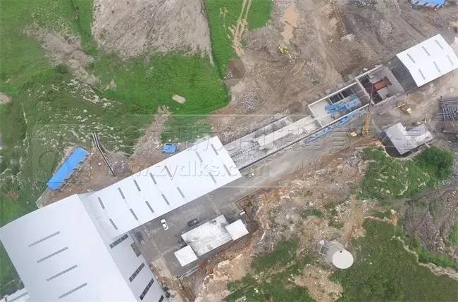 上圖為河北白沙時產(chǎn)3000噸骨料生產(chǎn)線遠(yuǎn)觀圖,破碎車間、篩分車間、成品料庫車間部采用封閉生產(chǎn)的方式,并配備有完備的除塵設(shè)備,在占地上部利用山勢,不占用耕地面積。