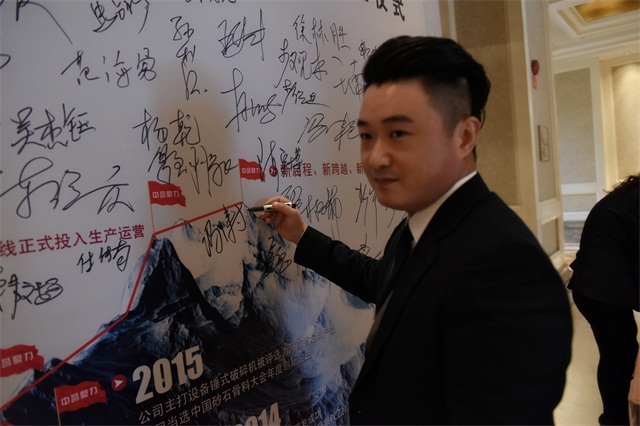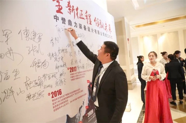 中譽(yù)鼎力裝備設(shè)計(jì)公司董事長張治民在簽字墻上簽名