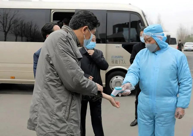 體溫檢測后進(jìn)入中譽(yù)鼎力智能裝備公司廠區(qū)