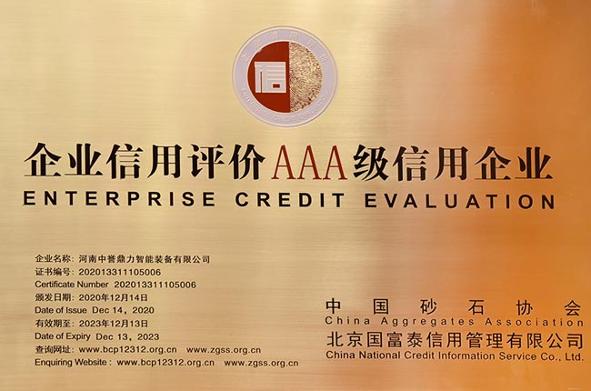 14日下午,在中砂石協會2020年年會上,協會副會長緱海榮公布了2020年度中砂石行業企業信用等級評價結果,河南中譽鼎力智能裝備有限公司被評為AAA級信用企業。