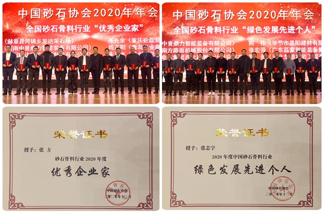 為表揚,樹立,引和推動行業向更高層次發展,此次年會還對2020年度砂石行業單位及個人進行了表彰。