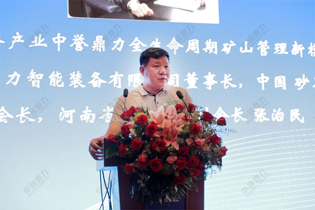 7月24日下午,河南中譽鼎力智能裝備有限公司銷售總監陳樹凱發表了《科技服務產業 中譽鼎力生命周期礦山管理新模式》主題報告。