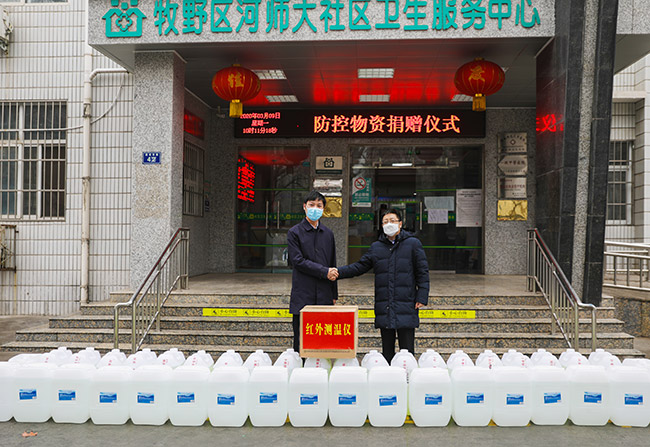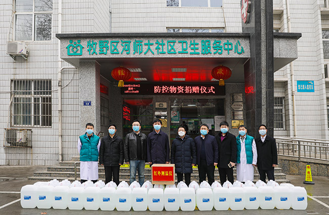3月9日上午,中譽鼎力向河南師范大學(xué)捐贈一批總價值近10萬元的防疫物資(包括紅外測溫儀123支、84消毒液500千克、醫(yī)用酒精400千克),用于冠狀病毒肺炎疫情的防控工作,以實際行動踐行企業(yè)責(zé)任與擔(dān)當,為堅決打贏疫情防控阻擊戰(zhàn)貢獻一份力量。