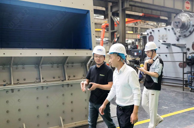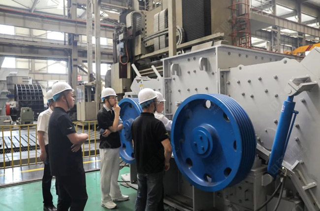 在觀摩過程中,參觀團查看了中譽鼎力破碎機、制砂機產品,并了解了產品的特點、原理和性能優勢。