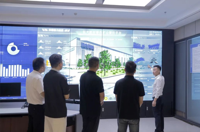 在中譽鼎力綠色建材大數據中心和智能化大廳,王順凡、杜凡新先介紹了中譽鼎力的企業情況、產品研發、智能礦山、建材業務等內容。參觀團先后了解了中譽鼎力在智能礦山管理、建材線上交易、綠色建材產業園等方面的成果和應用。