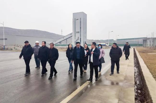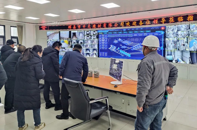 隨后,領導一行來到由中譽鼎力EPCO承建的輝縣中天建材項目,對中譽鼎力供應安裝的礦山裝備、智能中控系統等進行了實地考察,并就項目環保化、智能化特點開展深度交流。
