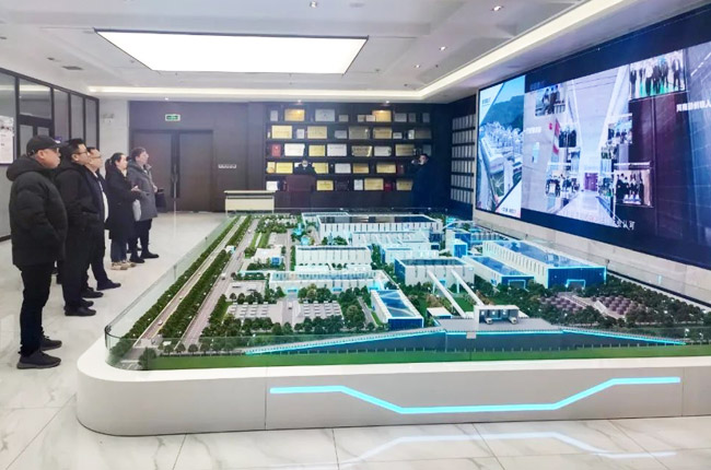 調研領導一行先來到河南中譽鼎力智能裝備有限公司,實地參觀中譽鼎力綠色建材工業互聯網大數據中心、十二位一體循環建材產業園項目沙盤等,對公司主營業務、發展歷程等有了進一步了解。