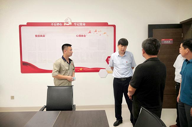 中譽鼎力黨建指導員王士存、公司行政副總經理崔玉清及黨支部書記、企管部部長吳澤朋程陪同,并介紹公司黨建情況。