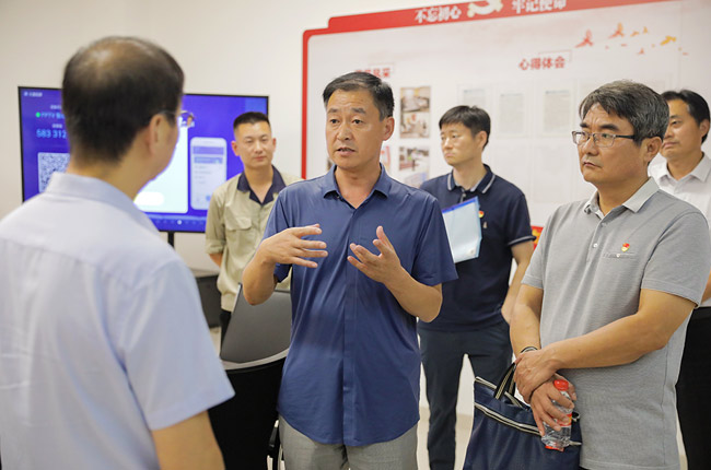 中譽鼎力黨建指導員王世存、公司行政副總經理崔玉清、黨支部書記吳澤朋程陪同,并匯報了公司黨建陣地建設、主題活動開展、黨員隊伍發展等各項工作情況。