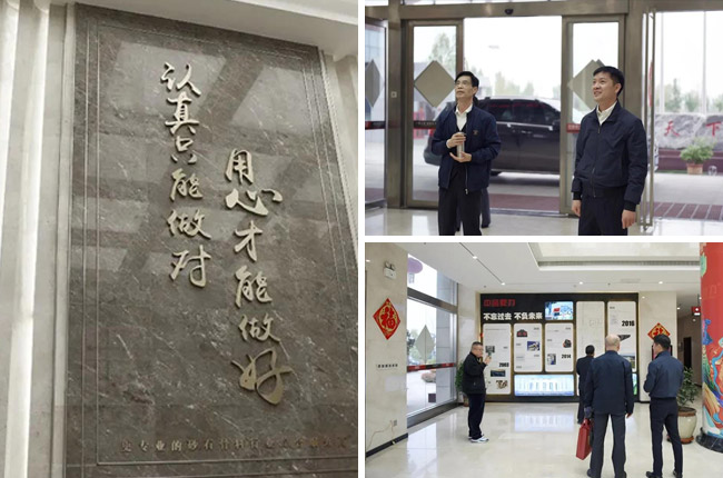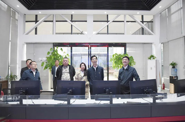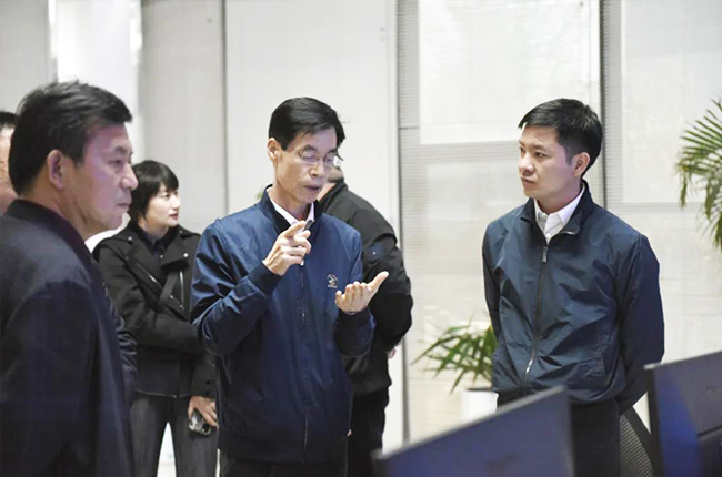 胡會長一行先來到中譽鼎力智能裝備有限公司,先后參觀了公司發展歷程文化墻、礦山管理云數據中心、多位一體循環建材產業園項目沙盤等,對中譽鼎力主營業務、創新發展情況有了進一步了解。