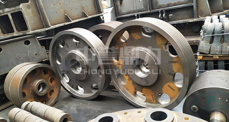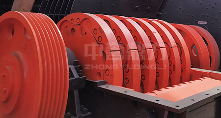 輥式破石機主要由輥輪組成、輥輪支撐軸承、壓緊和調節裝置以及驅動裝置等部分組成,物料在兩個相對旋轉的輥輪夾縫中收到擠壓而破碎。