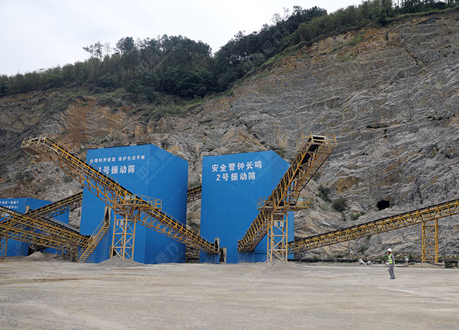 石頭機加工出的成品歸類于攪拌料,可由篩選分級機篩選分級出差距粒度的成品,契合需求的進入下一工序,不契合的則返回上級持續破碎,圓振動篩分機是經常使用的篩選分級機械。