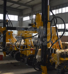 整機(jī)采用液壓傳動、自動除塵、自動卷電纜、履帶式行走、液壓油缸支配平行四邊形升降,在采掘巷道內(nèi)可進(jìn)行移動、升降、多臂錨桿鉆孔作業(yè),鉆機(jī)所有的操縱都由手柄集中控制,完實現(xiàn)機(jī)械化。