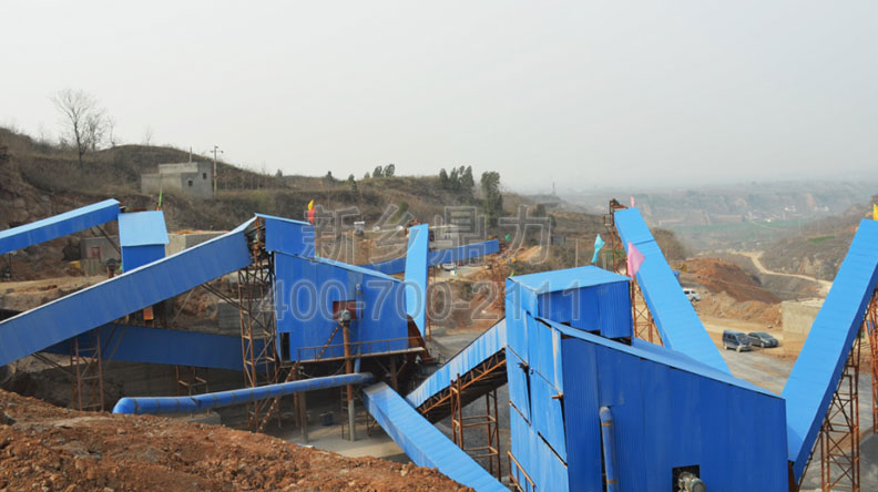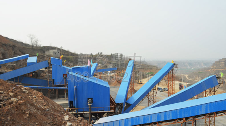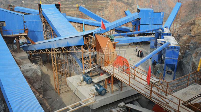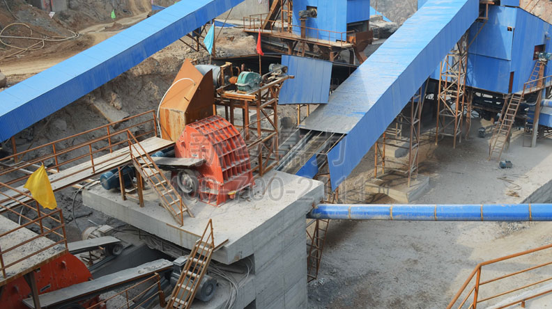 此條生產線時產700噸;基本配置:PCZ1615重型錘式破碎機、PC1512錘式破碎機、ZG2038給料機、3YKZ3070×2振動篩、2YKZ3070×2振動篩。