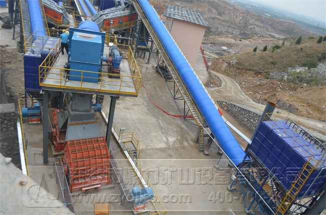 • 設備配置:振動給料機ZGC2050、重型錘式反擊破碎機PCZ1820、整形錘式破碎機PC1220*2臺、振動篩3YKZ3070*8臺、除塵器數臺