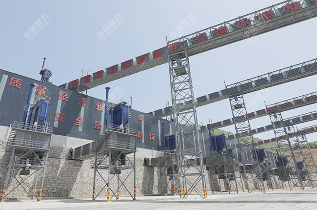 b.不同規(guī)格成品料通過密閉輸送帶進入相應(yīng)規(guī)格的封閉成品料鋼板儲料倉,避免石料露天堆放造成粉塵污染。