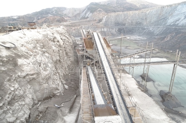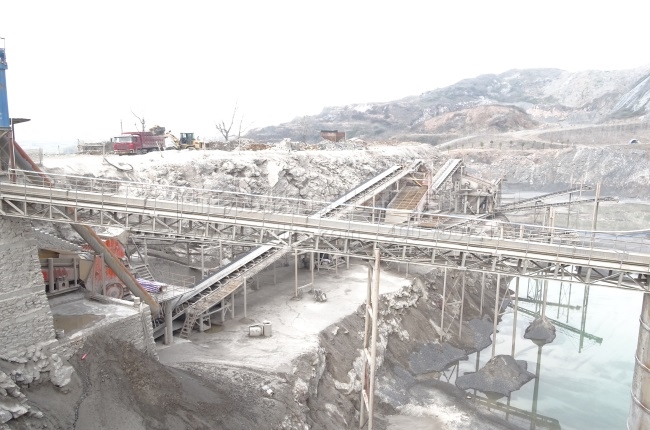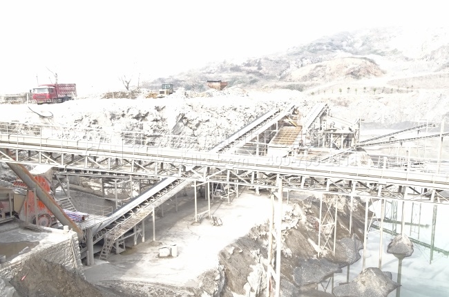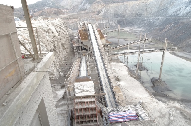 上圖我們可以看到石料生產線的實際生產現場,為了實際生產中的粉塵,該石料生產線引入部分水源進行降塵,大大凈化了整體生產環境。