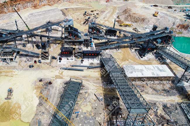 • 出料種類:DLZG2050振動給料機、DLPCZ1820重型錘式反擊破碎機、DLPC1622整形式破碎機、DL3YKZ3680振動篩、DLZSJ1218制砂機、FL1800動態選粉機、皮帶輸送機、斗式提升機、除塵器等礦山設備及智能礦山管理系統