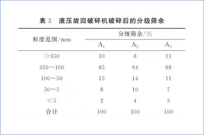 根據(jù)以上數(shù)據(jù),傳統(tǒng)旋回破碎機及顎式破碎機通常情況下的出料均為350mm左右。而中譽鼎力DLHGC臥式旋回破碎機成功實現(xiàn)了成品料小于200mm的粒度要求,擁有更大的破碎比,甚至可以將傳統(tǒng)的三級硬巖破碎工藝簡化為兩級工藝,設(shè)備優(yōu)勢顯著。